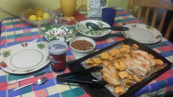 A week's worth of healthy meal ideas, Meat loaf, baked baby potatoes, carrot salad and sautéed zucchini. A low calorie baked pear serves as dessert. Night Seven: Steak and Salad Here's a great meal: Great ideas for healthy dinners. Fridge and Freezer Staples for a Sugar Free Diet; ... Read Article
